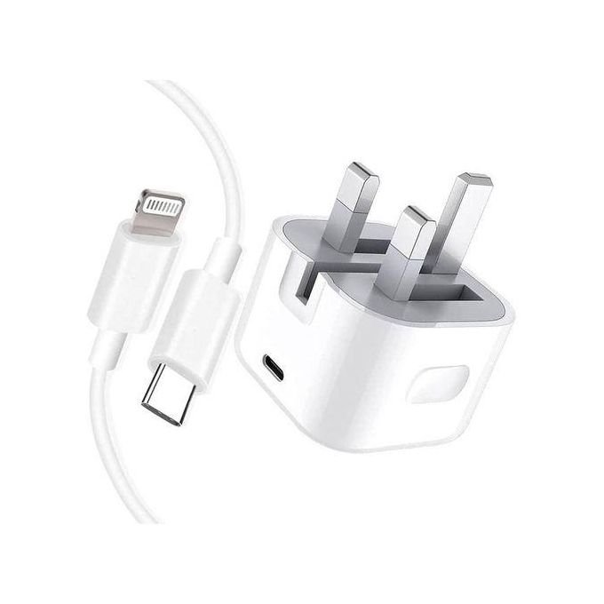 USB-C Fast Wall Charger with Lightning Cable – 3-Pin Plug For iPhone & iPad